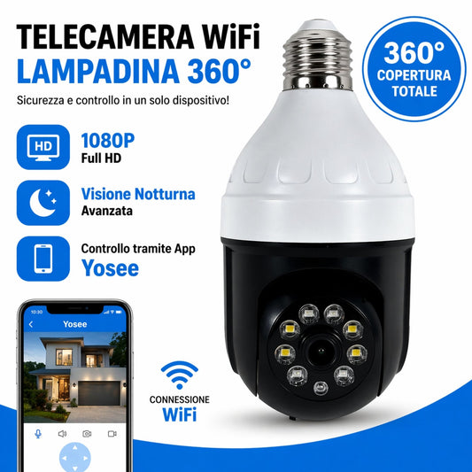 Telecamera WiFi Lampadina 360° 1080P IP Bulb Camera E27 Visione Notturna