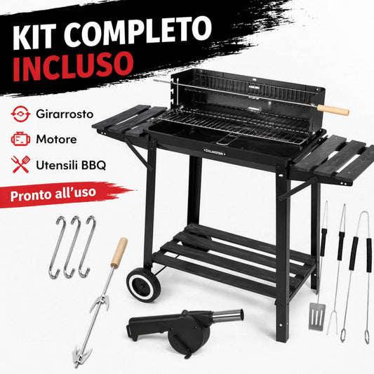 Barbecue a Carbone da Giardino con Girarrosto 93x41x86cm BBQ Grill con Accessori