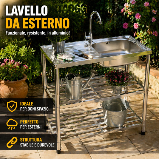 Lavello da Cucina Esterno Metallo con Rubinetto 75x40x83 cm Mobile Ripiani