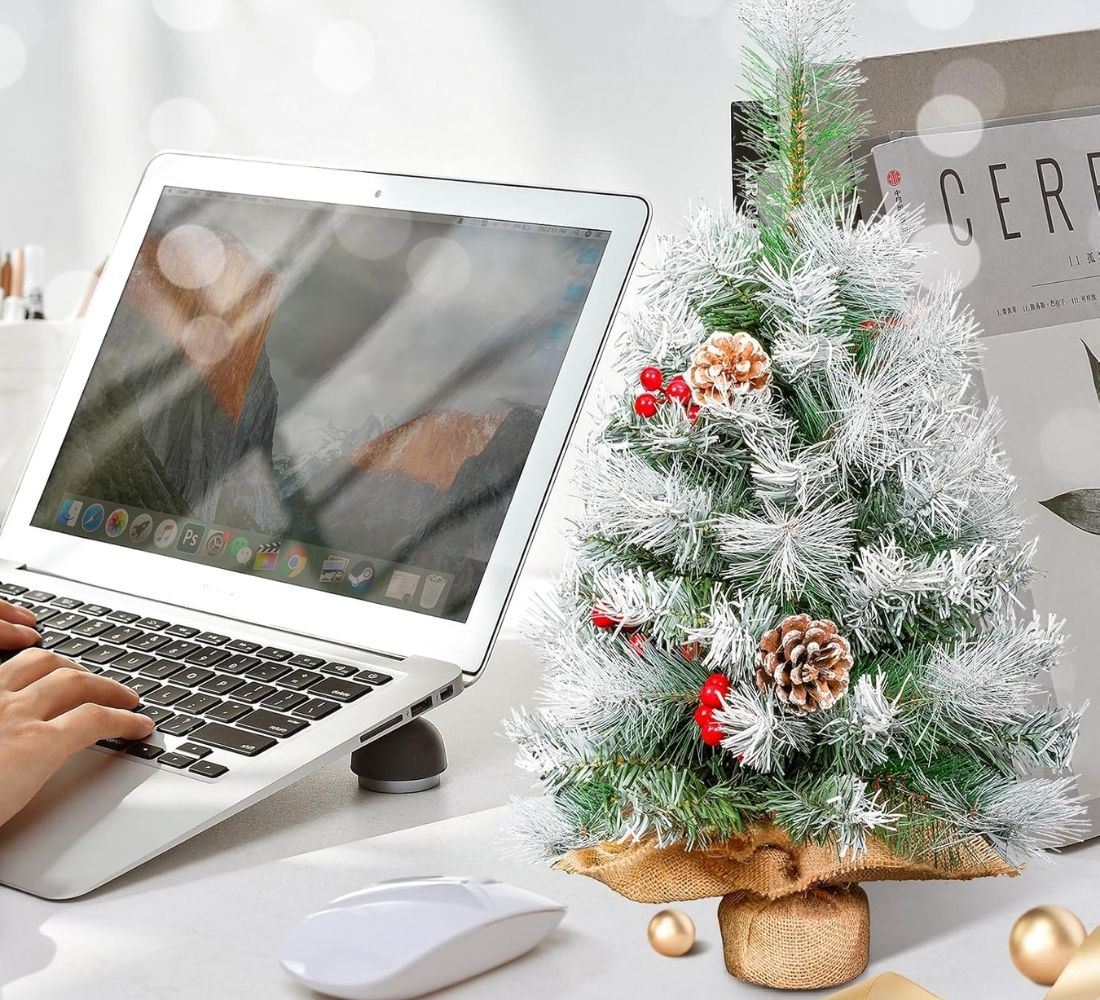 Albero di Natale innevato con Bacche e Pigne Piede in yuta 60 cm Ø 38 cm