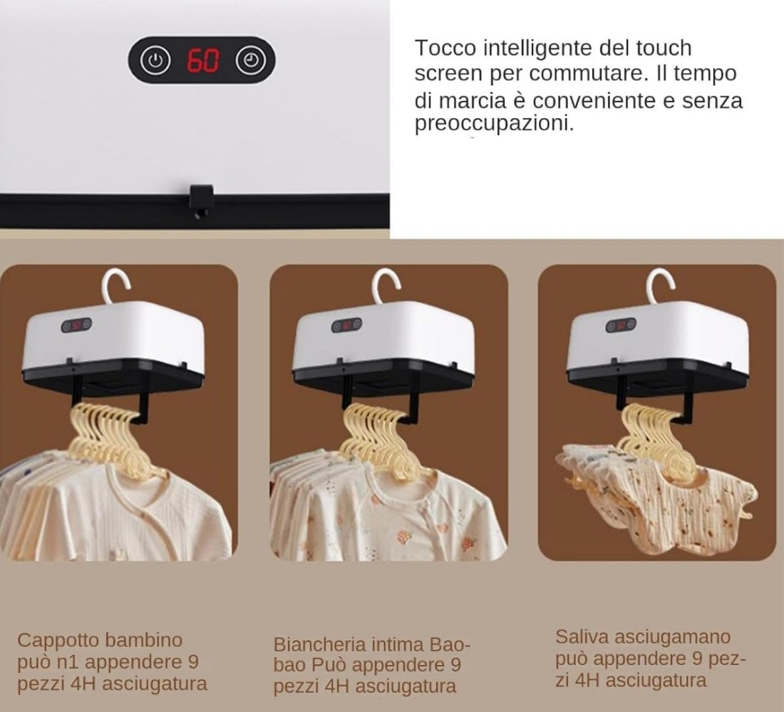 Box Asciugabiancheria ad aria calda, 600 W di potenza, timer regolabile, richiudibile ciclo di asciugatura completa in 1-2 ore.
