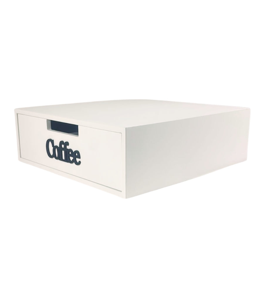 Elegante contenitore cassetto ideale per custodire capsule e cialde per caffè, bustine di te, tisane o altri preparati solubili.