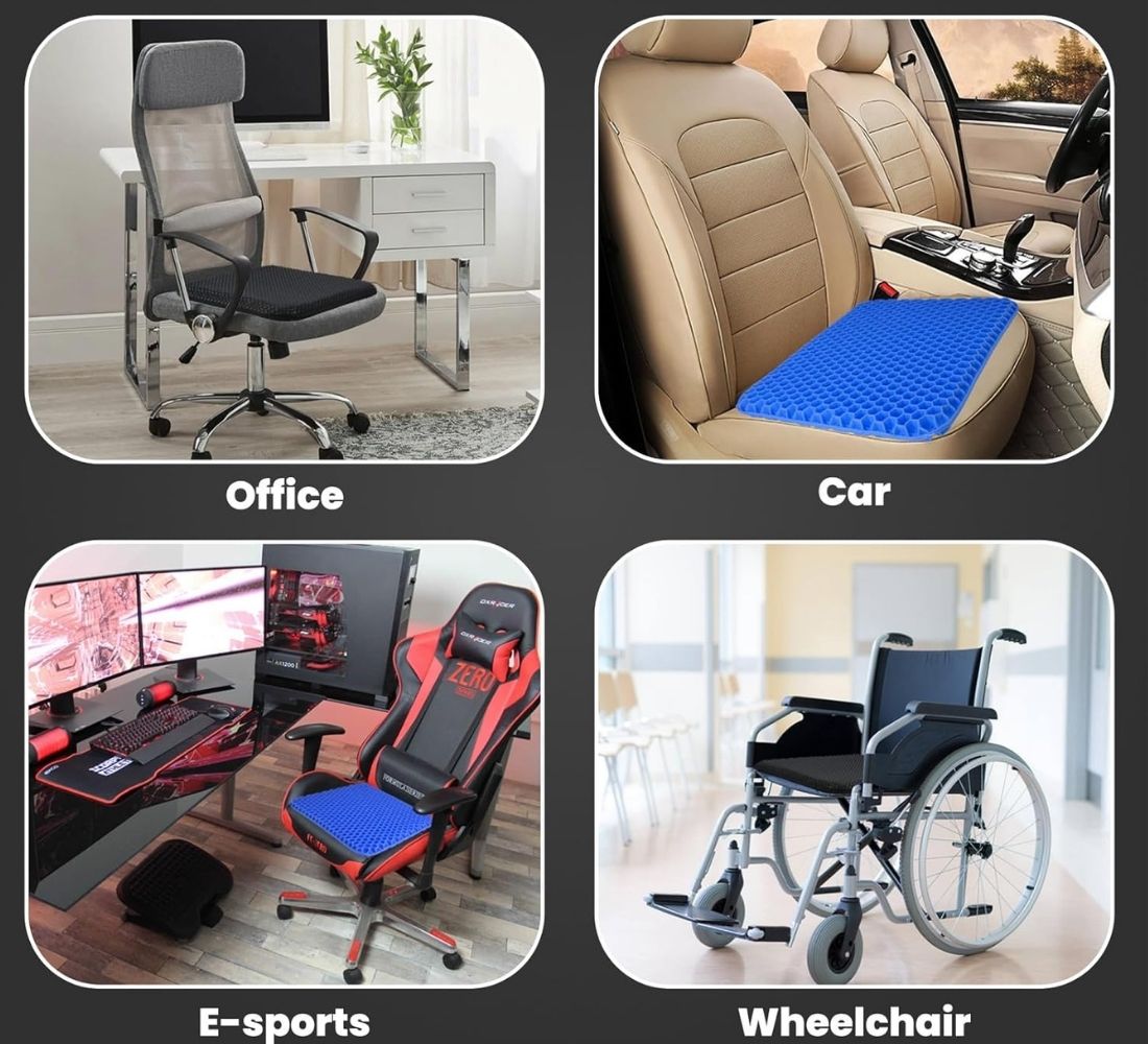 La sua struttura in gel elastico si adatta perfettamente alla forma del corpo, alleviando la pressione su fianchi e zona lombare durante le lunghe sessioni di lavoro.