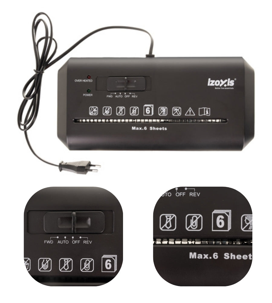 Distruggidocumenti per carta, documenti, schede CD, automatico, potente ed efficiente 10L P-2 IZOXIS!