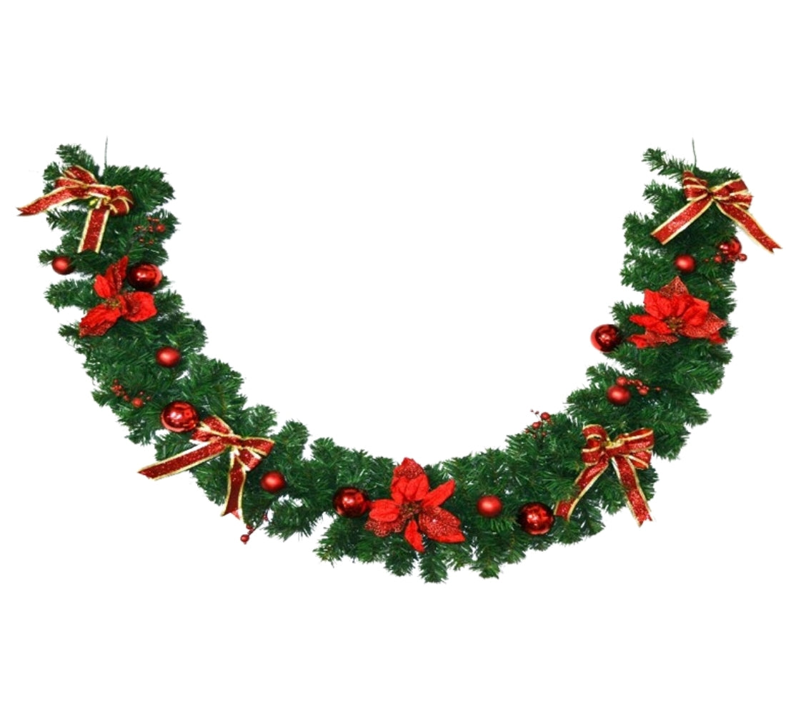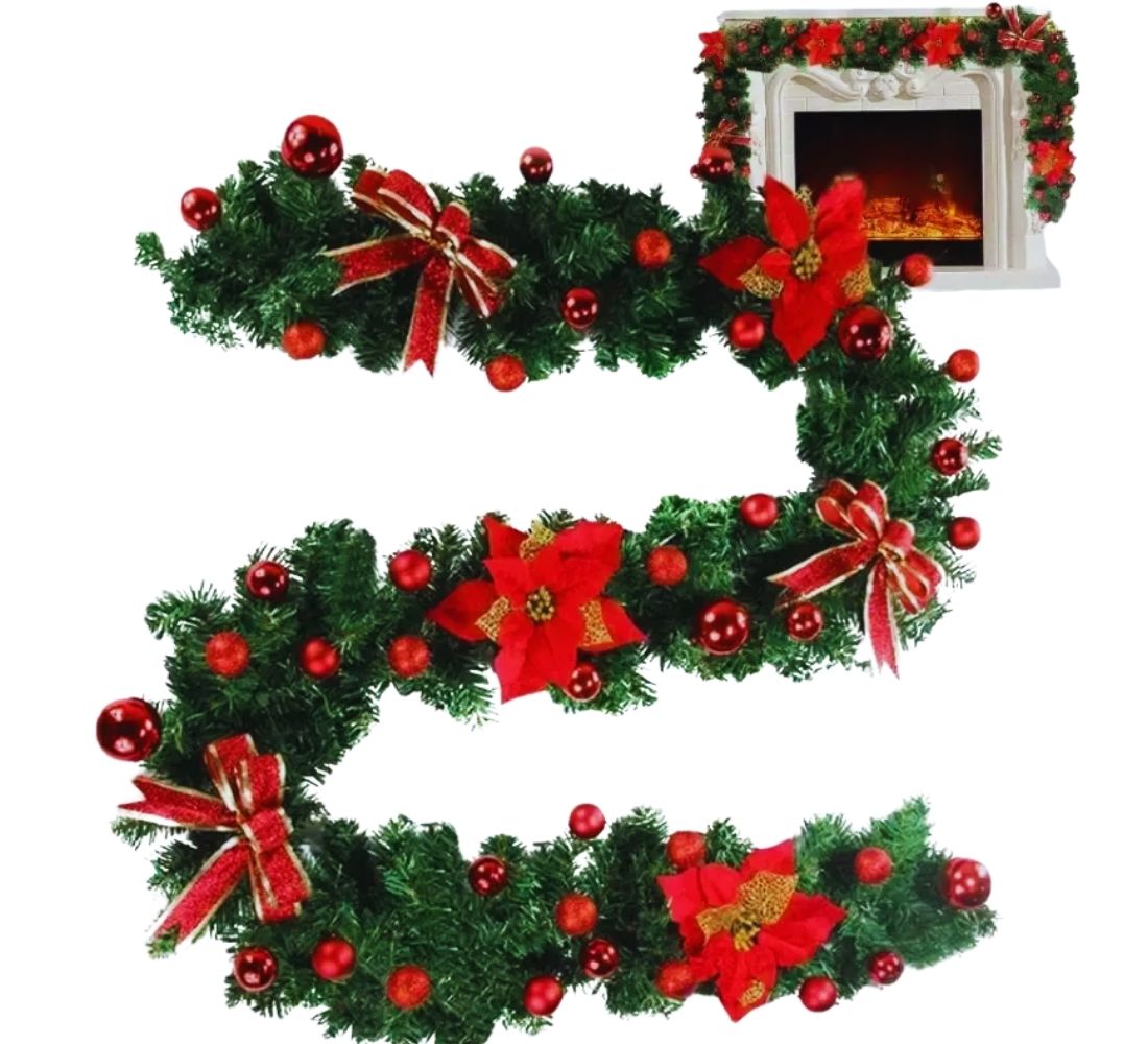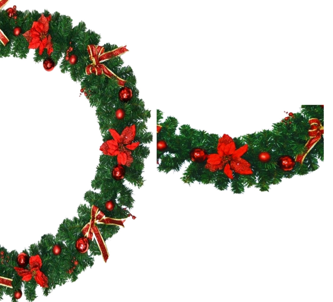 Ghirlanda Addobbata Natalizia Folta 2 Metri Fiocchi e Palline Decorazioni