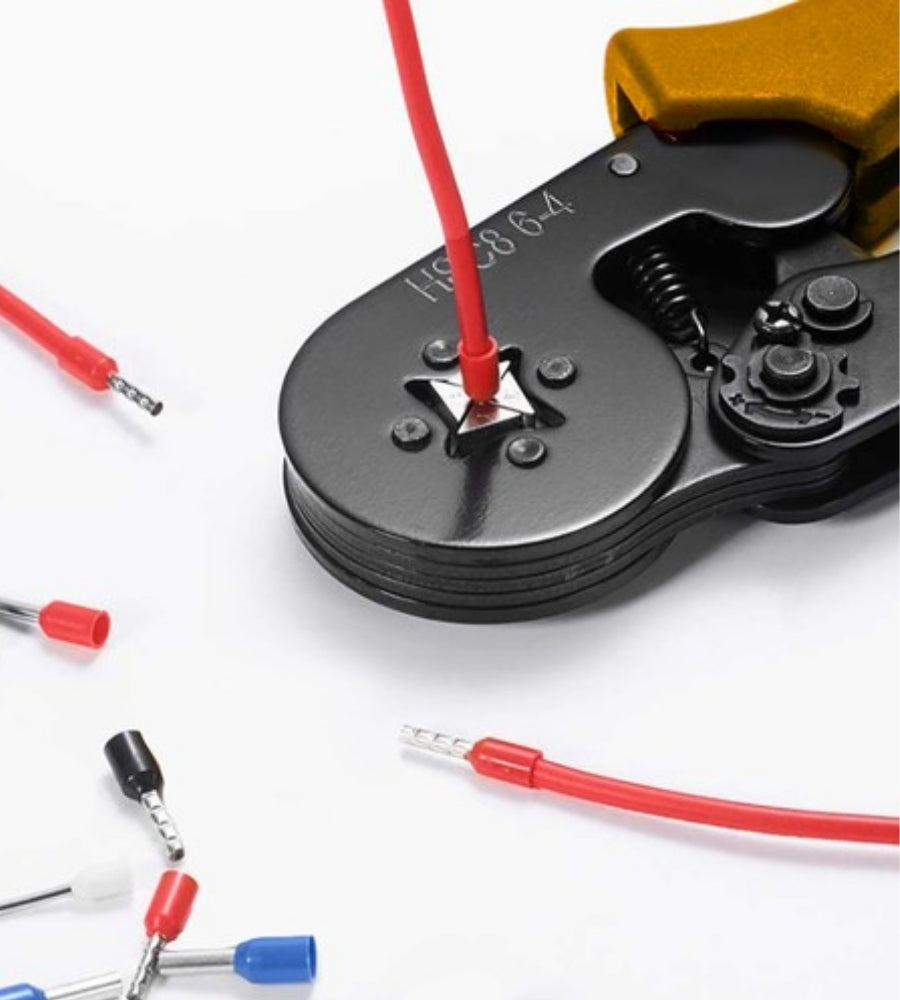 Lo strumento di crimpatura si adatta a vari tipi e spessori di fili, inoltre, il set include 5 dimensioni di boccole nell'organizer ,
