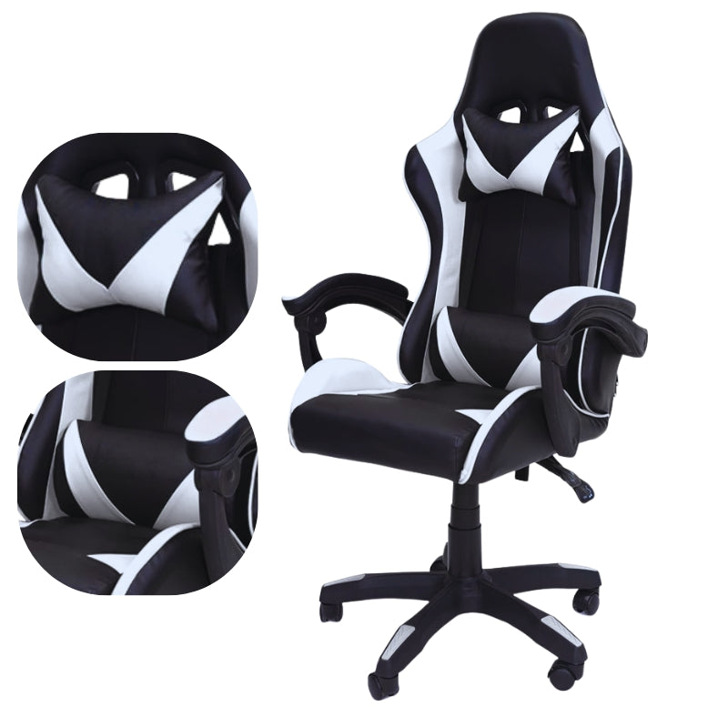 Sedia Gaming Poltrona Scrivania Ufficio Casa Reclinabile Cuscino Lombare Bianco